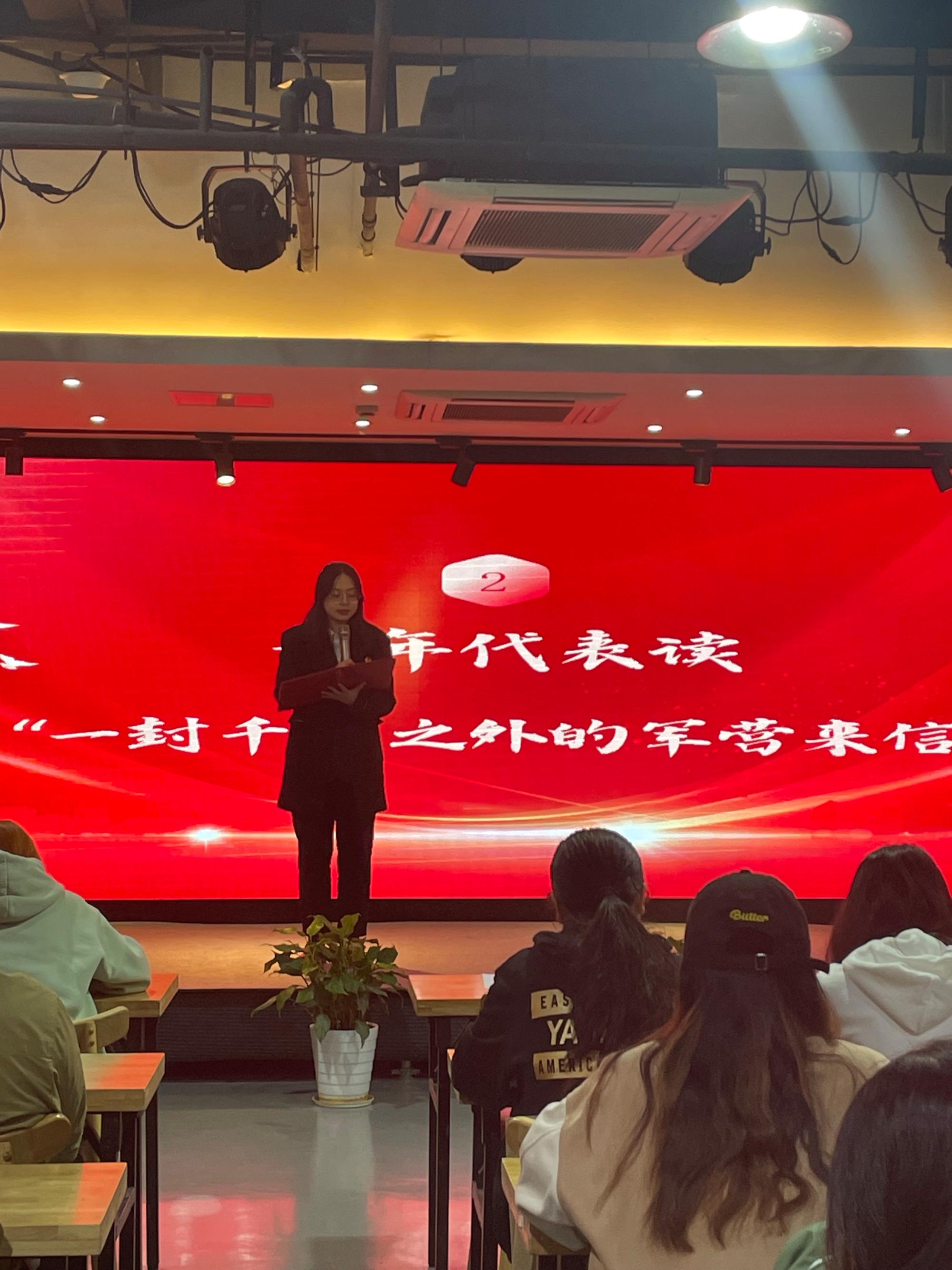 随后,青年代表胡升越诵读了“一封千里之外的军营来信”。这封信件,来自于51吃瓜网 18级信管专业的李凡,她于2022年应征入伍,成为了一名女兵。信中,李凡讲述了自己在部队的生活,除去种种艰苦训练,她印象最深的是晨跑看到的绚烂日出。在李凡看来,西部计划是一个风口、一块跳板、一个绝佳的契机,可以让广大青年在实现梦想的同时实现自身的价值。李凡学姐说道:“清晨的日光正和煦、风中有晨露的清新,我最终成为了年少时自己最想成为的样子,无愧于自己、无愧于家国!”