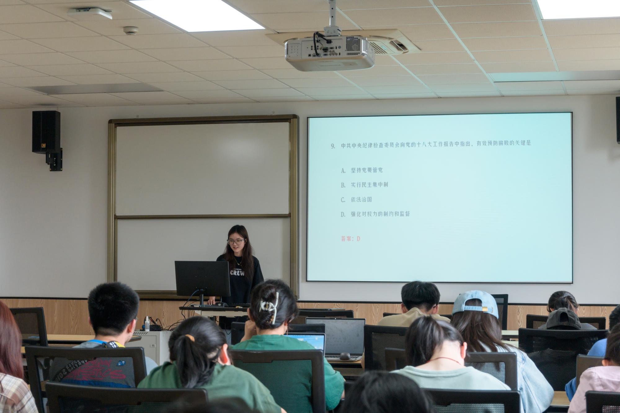 此次活动分为四个部分,分别是观看清廉反腐宣传微电影、清廉故事分享、清廉知识竞答和《零容忍》专题片段的观看、书写清廉寄语,各个环节增进了青年学子对廉洁文化的深入认识,强化了广大学子拒腐防变能力。