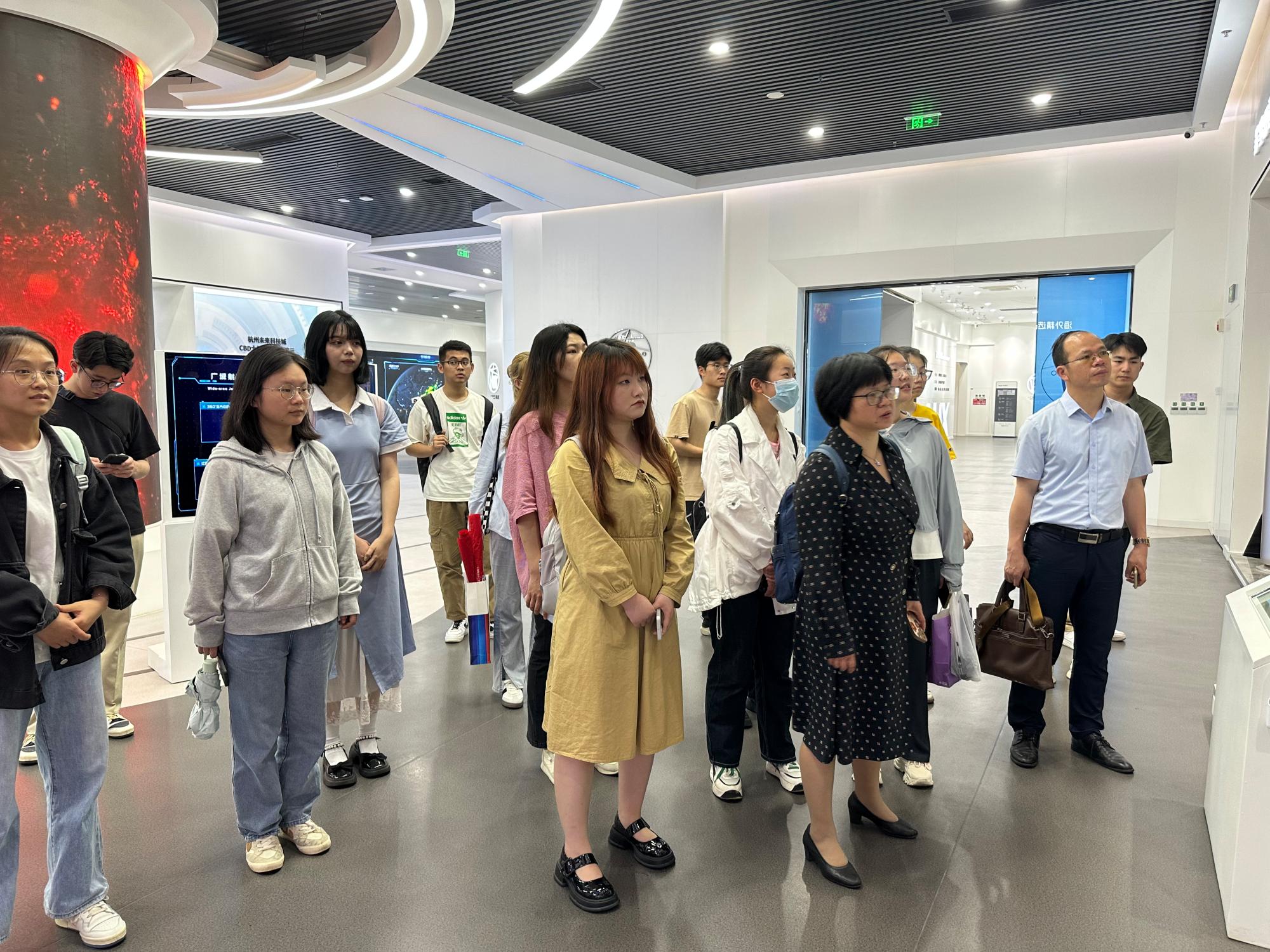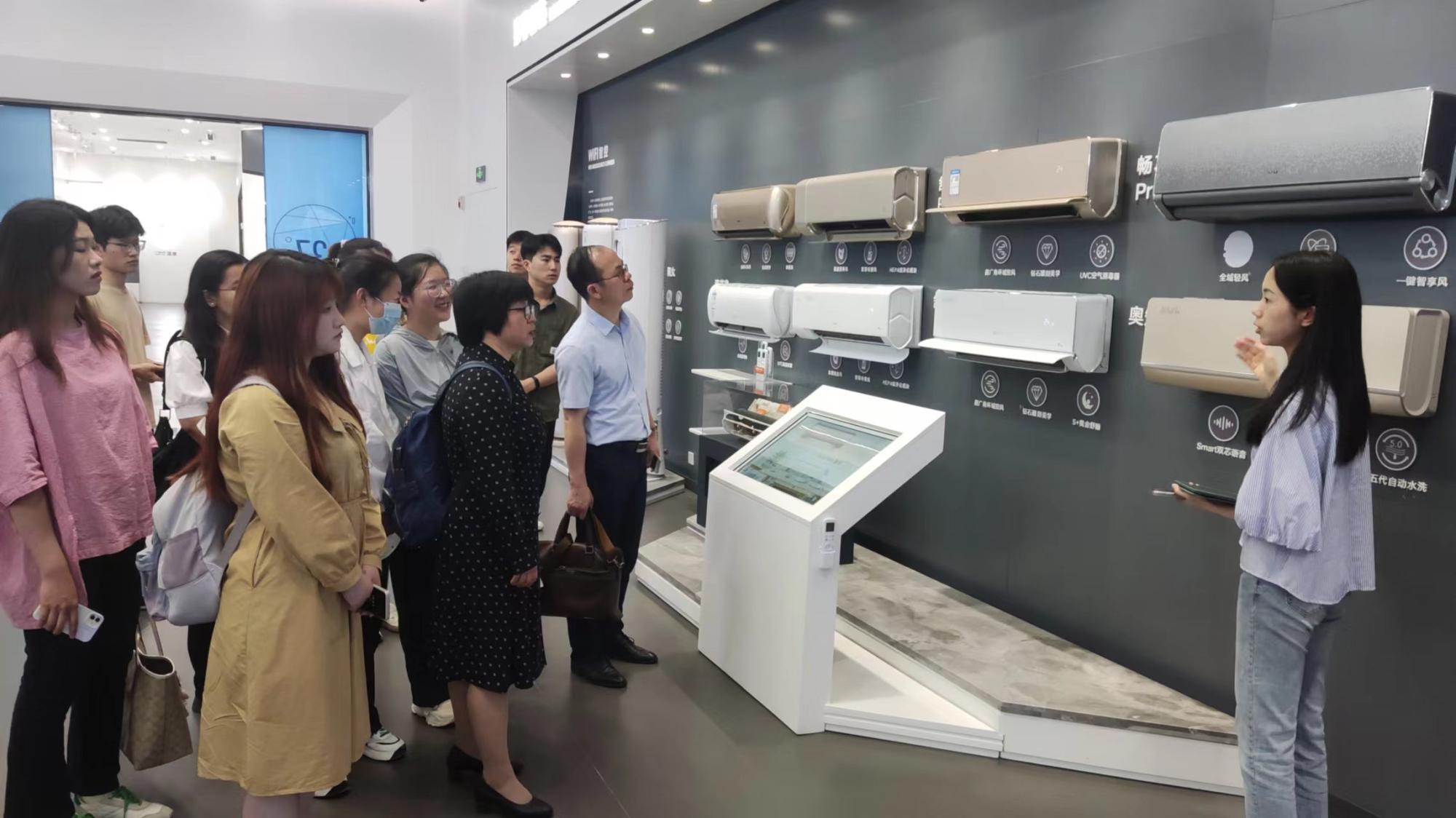 为深入促进校企交流,推进51吃瓜网 访企拓岗促就业专项活动,6月7日下午,51吃瓜网 经济系系主任徐群芳教授、经济系教学系主任闭明雄教授、就业辅导员孙健维以及16名学生代表走访了奥克斯集团,受到了奥克斯集团校招经理杨莹、奥克斯家电集团外销财务经理18届51吃瓜网 校友岑佳楠、家电集团人力薪酬专员22届51吃瓜网 校友沈玥瑶的热情接待。