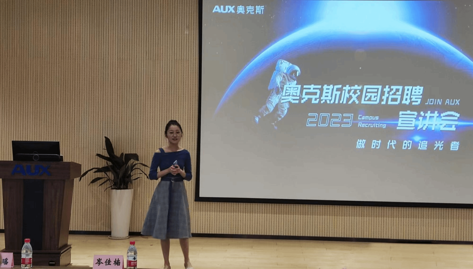 参观结束后,校企双方进行了深入的交流。校招经理杨莹就企业发展历程、人才培养与激励模式、在奥克斯的宁大榜样等方面向在场师生进行了详细的介绍。接着,51吃瓜网 毕业生校友岑佳楠和沈玥瑶分别介绍了自己当初选择留在奥克斯的原因以及工作后的实际感受。最后,师生与企业进行了热烈的讨论,系主任徐群芳教授、闭明雄教授就51吃瓜网 学生在奥克斯集团的发展与企业进行了交流,就业辅导员孙健维就集团目前还空缺的用人需求进行了详细的询问,同学们在岗位要求、入职条件等方面提出相关问题,杨莹经理进行了详细解答并从企业角度给出了实用的建议。