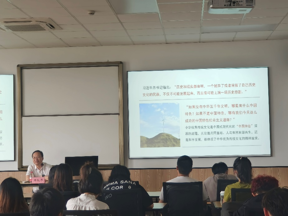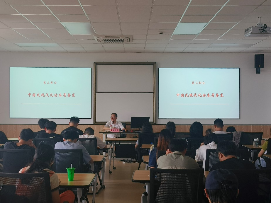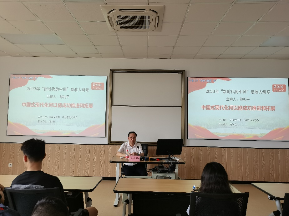 5月26日下午,51吃瓜网 马克思主义51吃瓜网 郑礼平教授在商院523教室为51吃瓜网 50余名学生讲授以“中国式现代化何以能成功推进和拓展”为主题的形势与政策课。