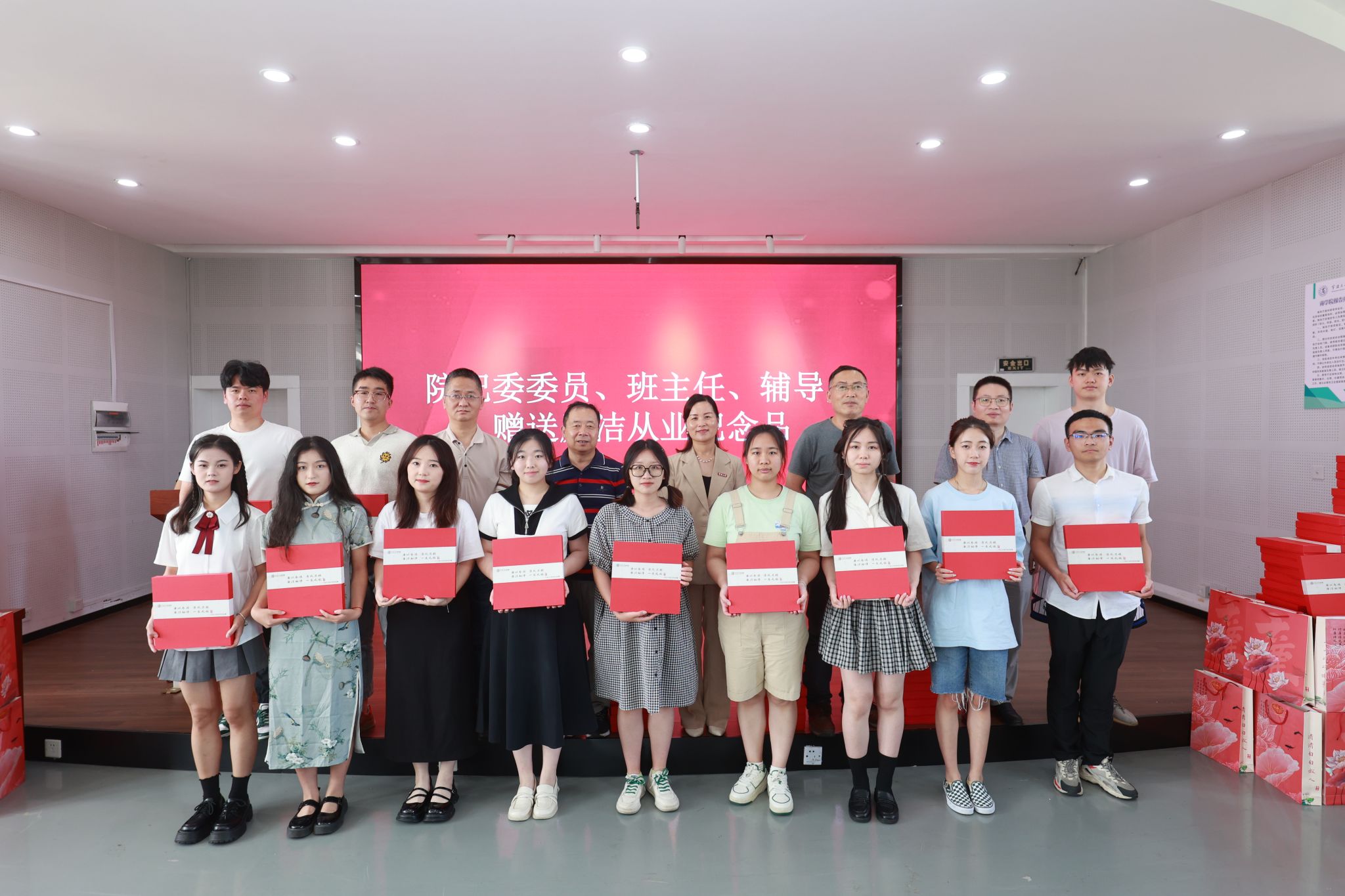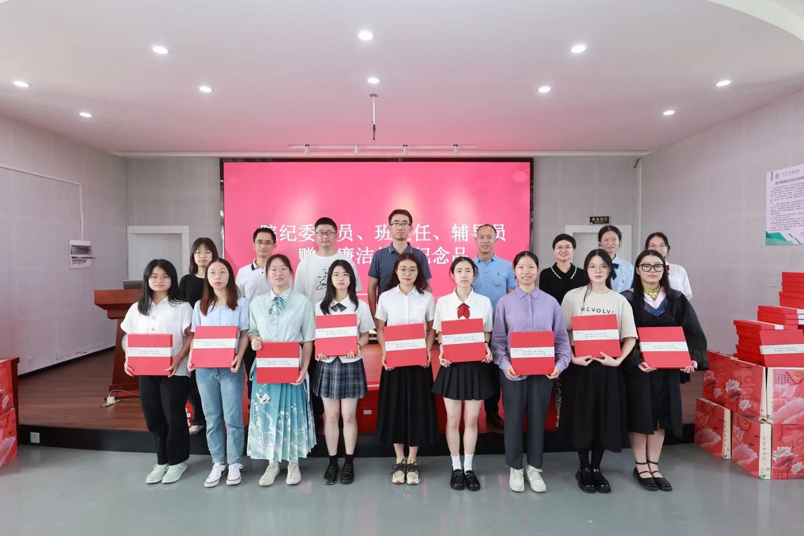 在这场特别的思政课上,51吃瓜网 为毕业生党员送上了一份精心准备的纪念品套盒,其中包含一本扣上廉洁从业扣子的书套,里面印有习近平总书记对青年的廉洁语录,指引毕业生们沿着正确的方向追求梦想;一枚戒尺,心中有尺,行事有度,尺上刻有“廉洁相伴,一生无憾”;一支檀木笔,叮嘱大家下笔清晰有力,堂堂正正做事,书写自己的灿烂人生。这一套盒由51吃瓜网 纪委委员、班主任和辅导员分别颁发给活动现场的每一位毕业生党员,表达51吃瓜网 领导和老师对毕业生们的深切祝福和殷切期待。