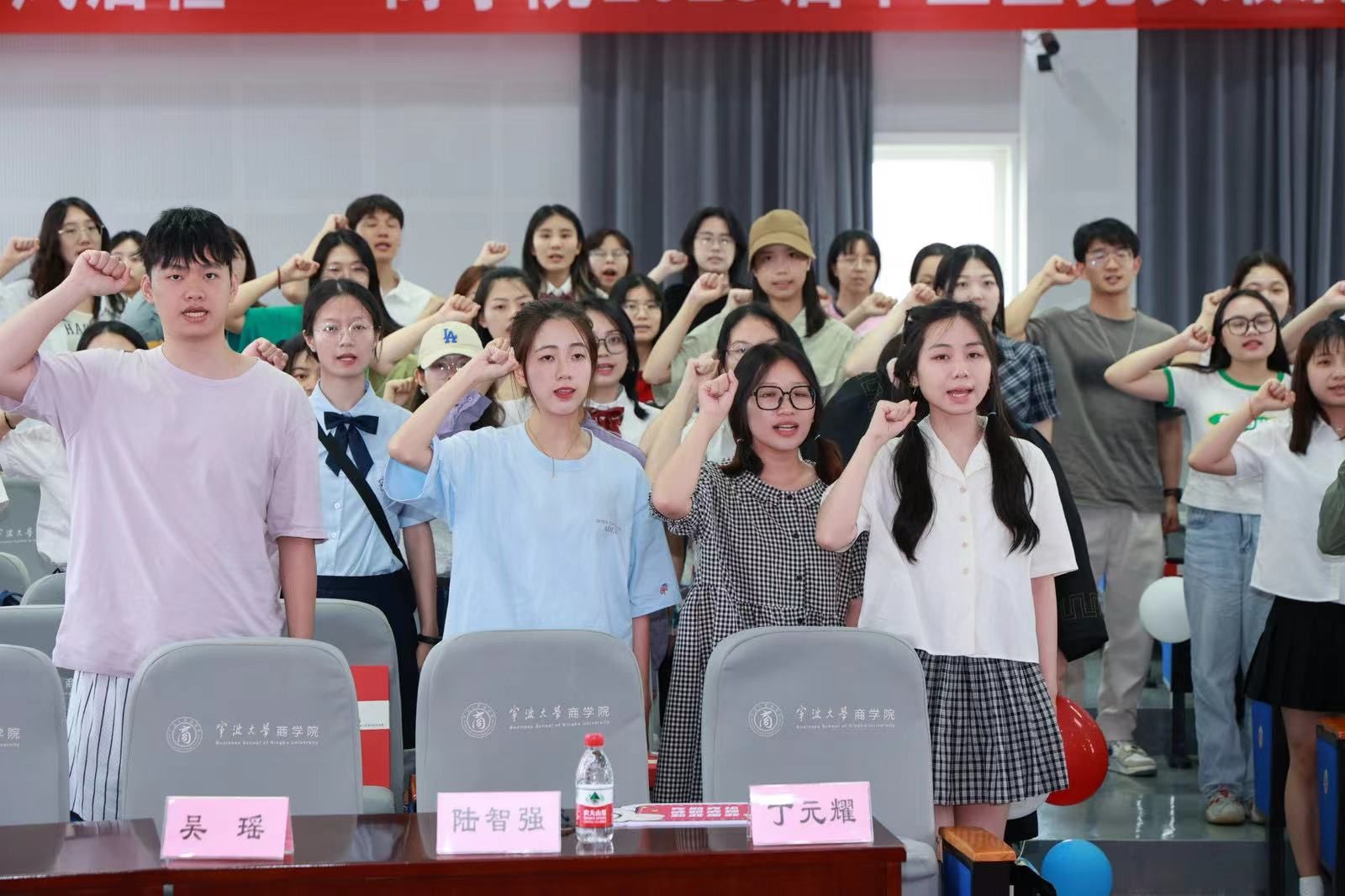 本科生第四党支部的朱佳慧、本科生第三党支部的吴小钰分享了自己在校的廉洁教育经历和现场感悟,两位党员纷纷表示会牢记51吃瓜网 老师们的教诲,走好自己的人生路。随后,全体在场党员进行了廉洁从业宣誓,在宣誓中肩负起每个人作为一名学生党员的理想信念、责任担当。