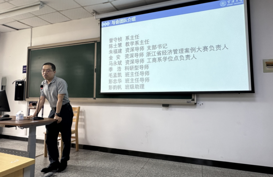 6月26日下午,工商系2022级师生见面会在包玉刚8号楼102教室隆重举行。曾守桢系主任、陈士慧教学系主任、朱福建导师、金安导师、马永斌导师、季浩导师、毛孟凯班主任、彭忠华班主任及班级助理彭韵帆同学出席会议,会议由朱福建老师主持召开。经专业分流后的87名2022级工商管理专业新生参加了此次见面会。