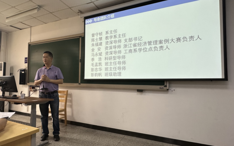 金安老师与新生们一起浏览了大一管理学等课程,并介绍了浙江省案例分析大赛的具体情况。