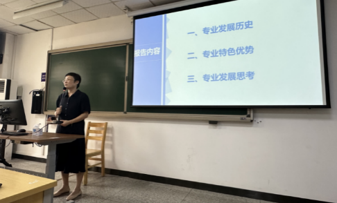 陈士慧教学系主任为新生们简单介绍了工商系的发展历程、专业特色以及未来发展情况。