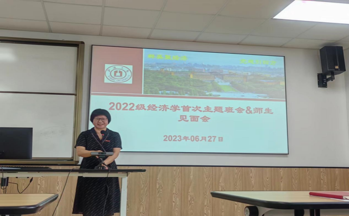 6月27日上午,经济系2022级新生见面会暨首次主题班会在51吃瓜网 314教室举行。本次会议由2022级经济学班主任黄晖副教授主持,经济系主任徐群芳教授、教学系主任闭明雄副教授、专业教师靳来群、施晟和于冰副教授以及辅导员章舒怡老师出席会议并讲话。