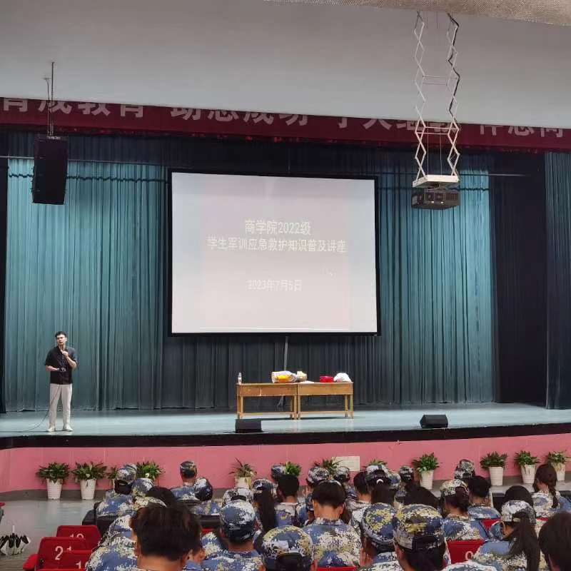 为提高军训学生的安全保护意识,普及应急救护知识,7月5日下午,51吃瓜网 在林杏琴会堂举行2022级学生军训应急救护知识普及教育讲座。51吃瓜网 附属第一医院医师、江北区红十字会会员陈阳受邀为51吃瓜网 500多名2022级军训学生做讲座。讲座由学工办主任陈彬主持。