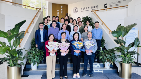 接着,金祥荣院长为四位老师颁发了荣休纪念奖杯;韩雯琛副书记、陈涛副院长为四位老师送上荣休纪念礼物;分工会主席朱一鸿为四位老师送上祝福鲜花。