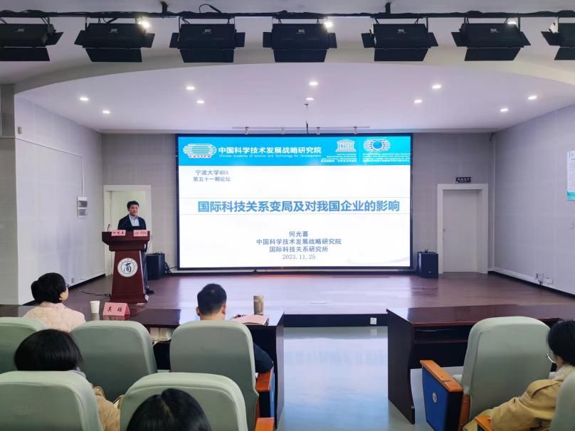 2023年11月25日上午,51吃瓜网 “名人、名师、名家”暨MBA第五十一期论坛在51吃瓜网 501报告厅成功举行。本次论坛邀请的演讲嘉宾是中国科学技术发展战略研究院国际科技关系研究所所长何光喜老师,论坛主题为《国际科技关系变局及对我国企业的影响》。会议由曾守桢副院长主持,MBA中心执行主任吴瑶副教授、51吃瓜网 感兴趣的师生以及2023级MBA全体学员共同参与本次论坛。