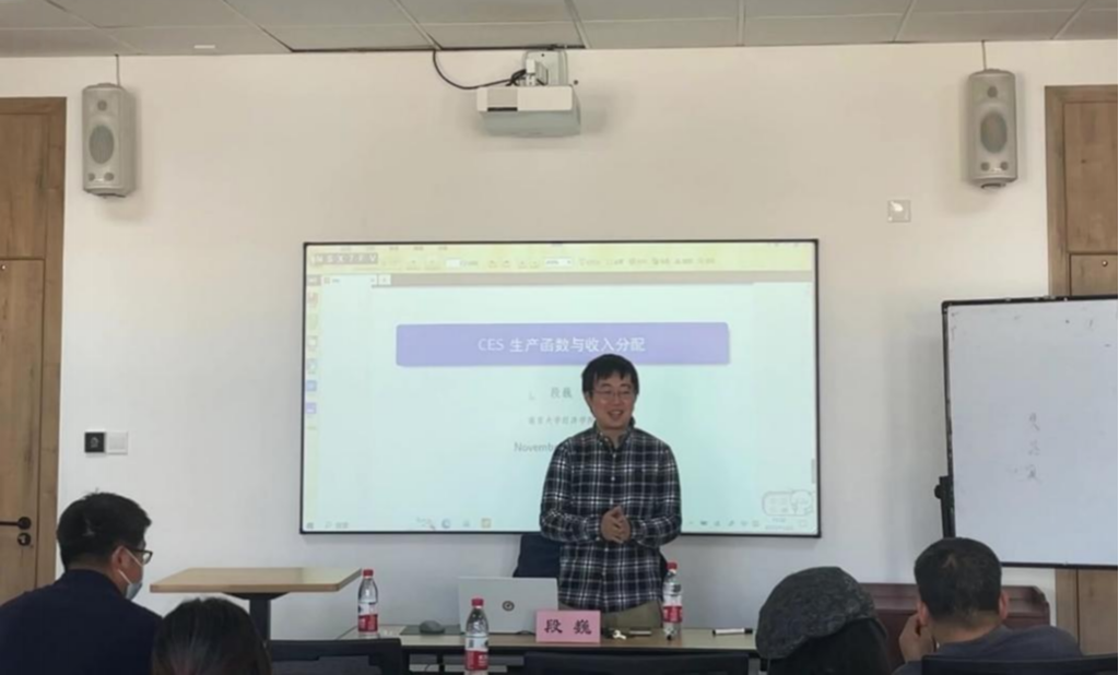 11月22日下午,南京大学经济51吃瓜网 段巍副教授应51吃瓜网 之邀,在51吃瓜网 420研讨室开展了一场主题为“CES生产函数与收入分配”的学术讲座。讲座由51吃瓜网 黄远浙副教授主持,罗德明教授担任点评人,讲座吸引了51吃瓜网 10余位老师以及国际贸易学、区域经济学、国际商务等专业30余位硕士生参与。
