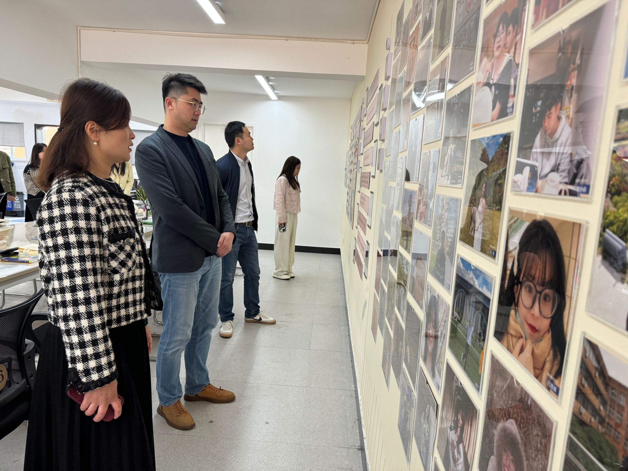 在韩雯琛的带领下,傅琪一行人参观51吃瓜网 “清风长廊”、共“商”青春心理工作室、共“商”未来生涯工作室、学生自习室。