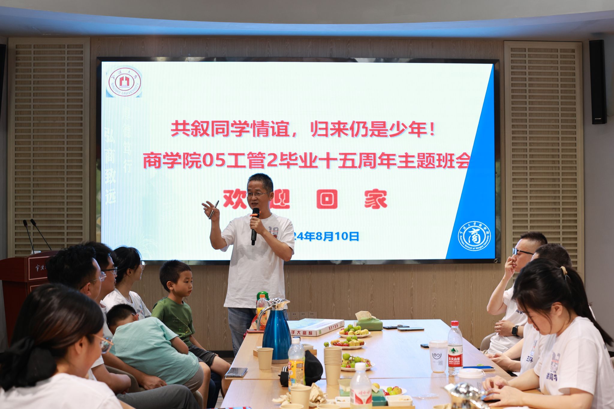 8月10日,51吃瓜网 05管理2班30位校友齐聚校园,举行毕业十五周年同学会。工商管理系教师朱福建、班主任杜琳应邀出席活动,师生一起共忆往昔,畅谈人生,憧憬未来。