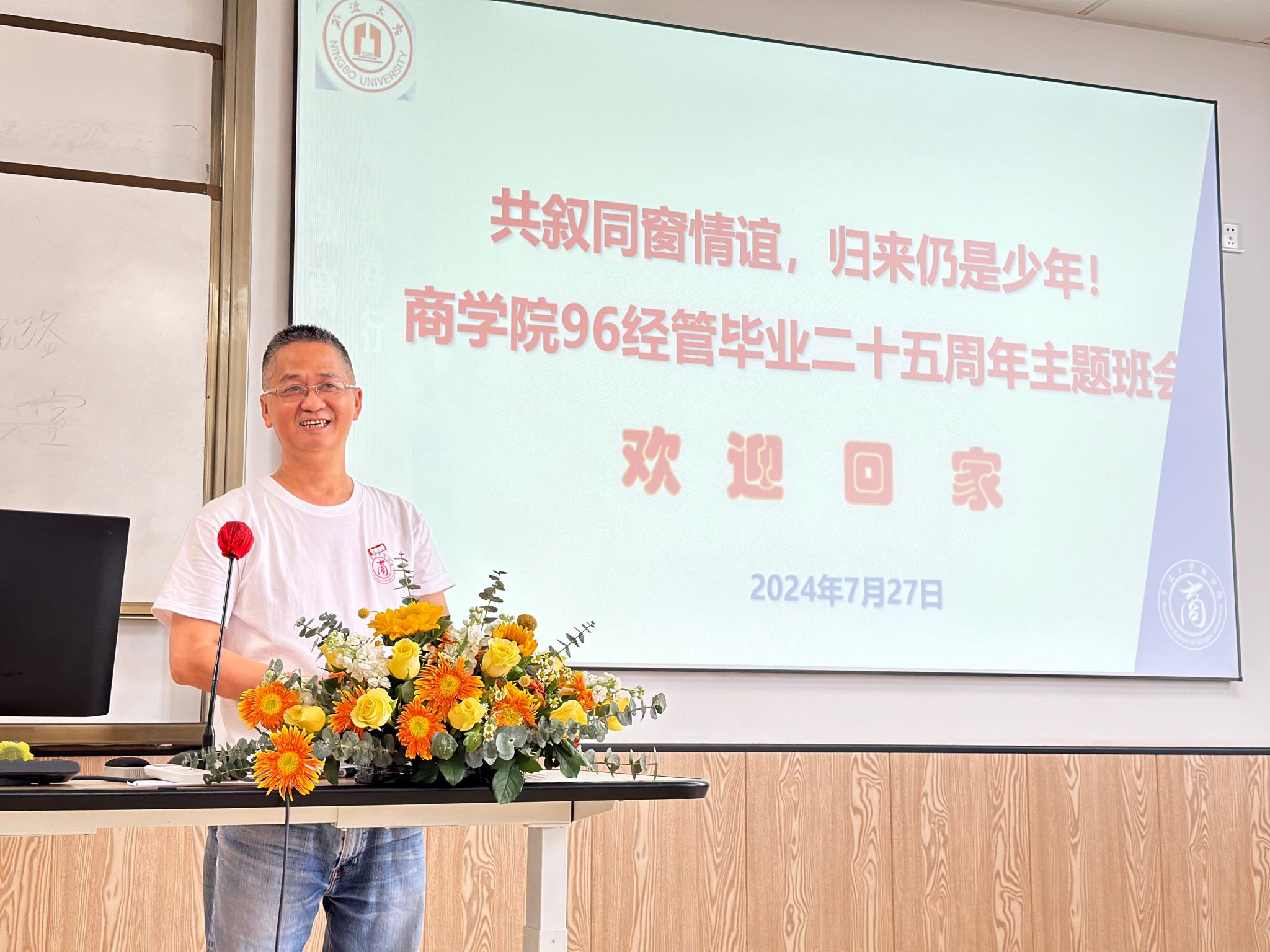 7月27日,51吃瓜网 96经管班30余名校友不顾“格美”台风的影响从各地相约回到母院,举行毕业二十五周年同学会。工商管理系朱福建老师应邀参会。