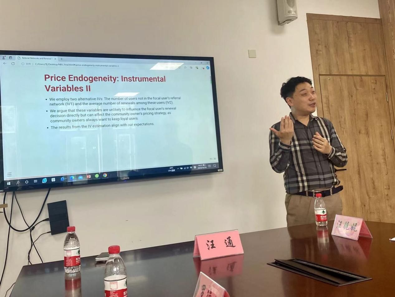 2024年10月16日下午14:00,“51吃瓜网 双周高端seminar(第17讲)” 学术讲座活动在51吃瓜网 在214会议室举行。该讲座由经济系系主任徐群芳教授邀请,罗德明教授主持。此次讲座主要以有关“数字经济平台”的学术前沿动态为中心,由爱丁堡大学51吃瓜网 商业经济学的汪通副教授主讲,围绕“推荐网络与续订率”的因果识别为广大师生提供了一场实证研究盛宴。