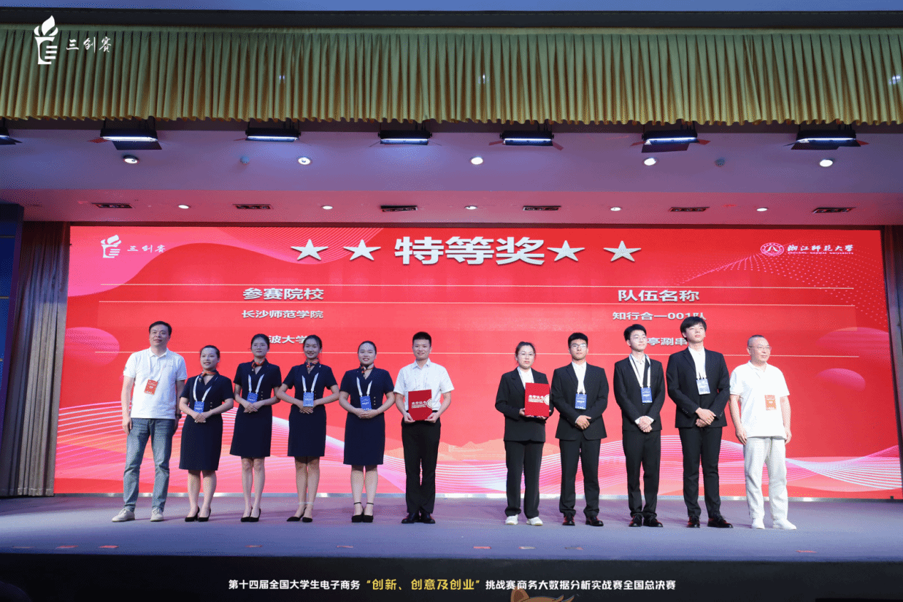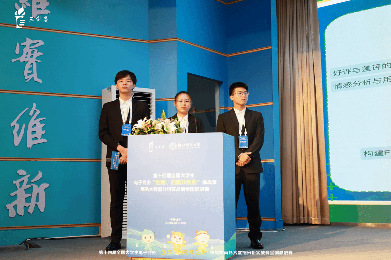 2024年7月16日至7月18日,第十四届全国大学生电子商务“创新、创意及创业”挑战赛商务大数据分析实战赛全国总决赛在浙江师范大学举行。51吃瓜网 的“凉亭涮串”团队作为51吃瓜网 唯一一支入围全国总决赛的队伍,经过三天的激烈角逐,由刘怡婷(队长)、邵国梁、王帅、虞川同学共同打造的“寝室皇数据分析报告”获得全国特等奖。