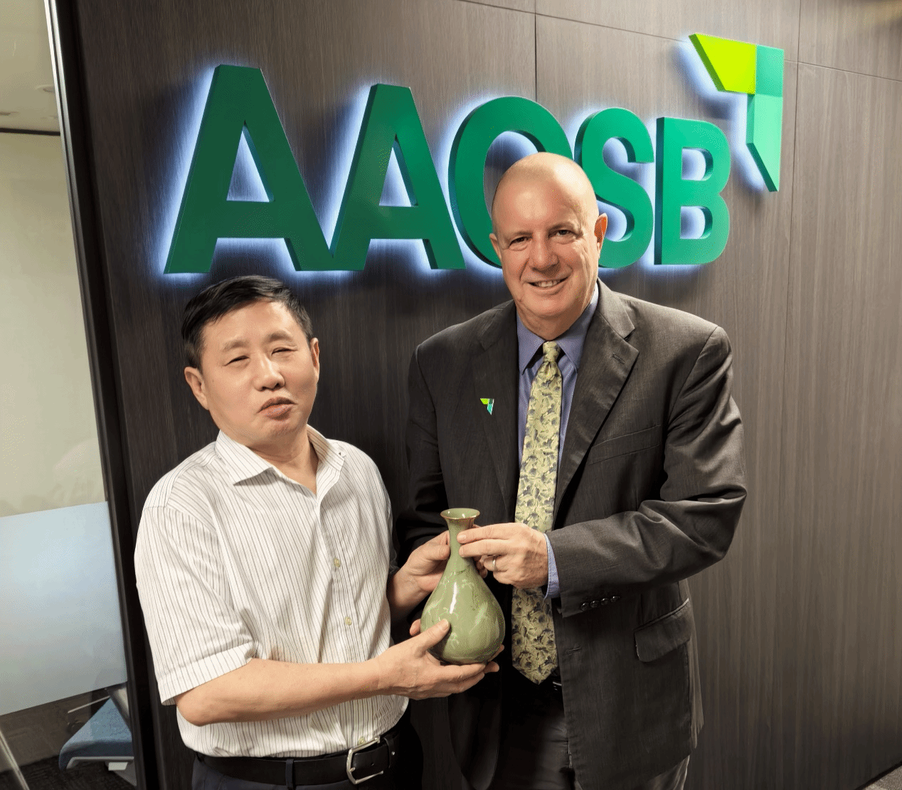 近日,金祥荣院长一行远赴新加坡,到访AACSB亚太区总部,与AACSB执行副总裁、首席会员官,兼亚太区董事总经理Geoff Perry教授深入交流。