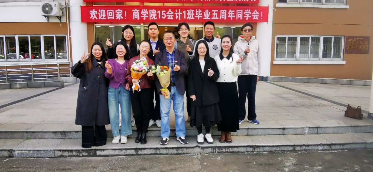秋去冬来情谊在,同窗相聚乐开怀。11月24日,15级会计1班校友返校举办毕业五周年同学会。来自市内外各地的十余名校友与老师们齐聚于此,重走校园路,再续同窗情。班主任李丽、任课教师朱福建、于瑾滔及带班辅导员董璐应邀参加。