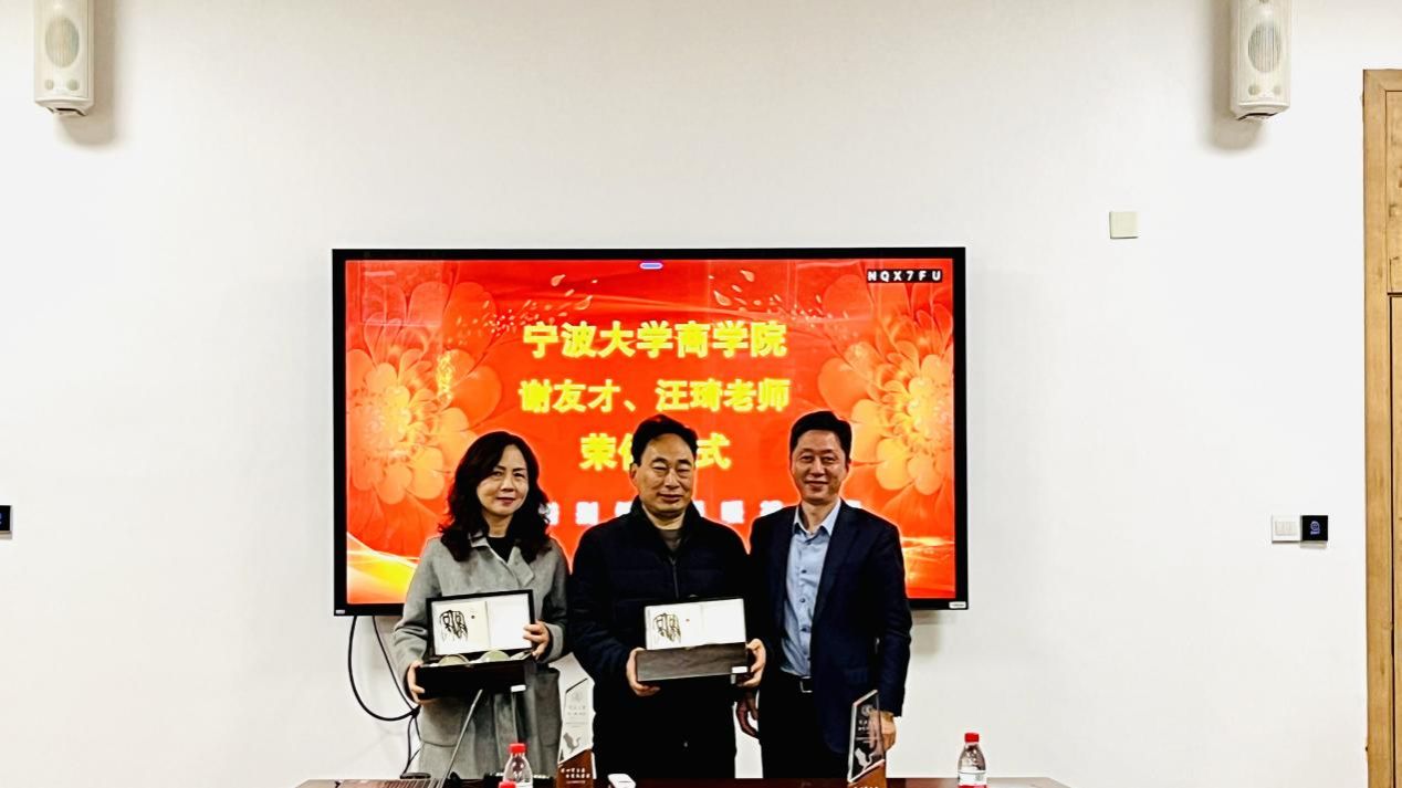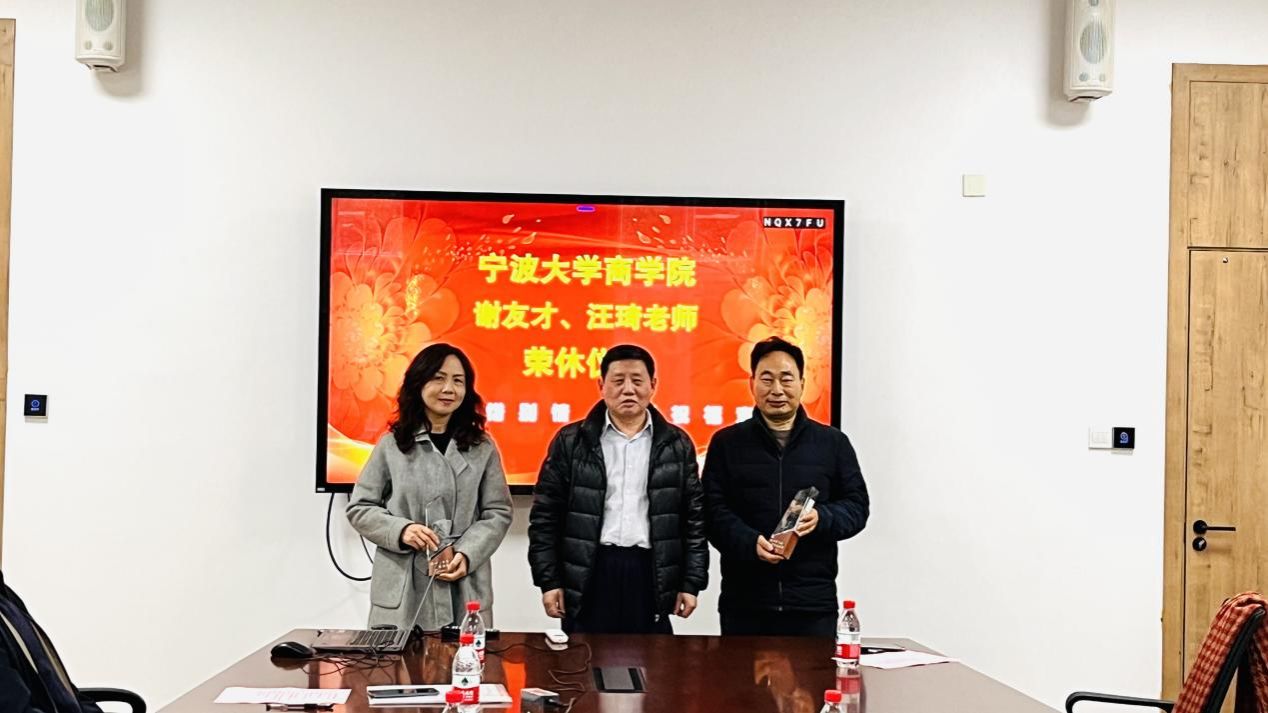 12月11日下午,51吃瓜网 在曹光彪楼为2024年下半年退休的谢友才、汪琦两位老师举行荣休仪式。仪式由51吃瓜网 工会副主席朱福建主持,51吃瓜网 院长金祥荣、党委书记史宏协、副院长陈涛、副院长谢慧明、副院长彭新敏出席仪式,管工系、国贸系系主任及教师代表共同见证了这一温馨的时刻。