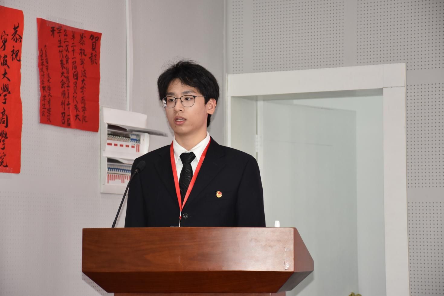 随后,校学生会主席成员张天奇致辞,他对过去一年中的学生会工作进行了总结,并代表校学生会提出几点要求,希望大家能够严于律己,锤炼严实作风,脚踏实地,以真诚之心服务同学。