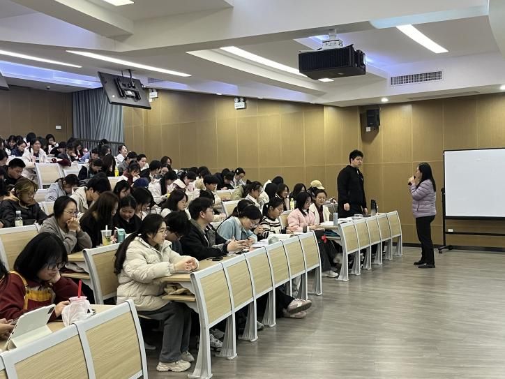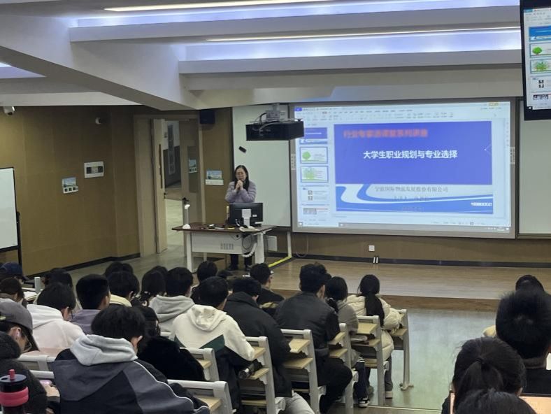 下半场讲座聚焦国际贸易与物流行业生态。孙老师结合宁波“全球第一大港”的区位优势,通过“外贸生态圈”模型解析国际贸易全流程。针对行业前沿,通过案例演示,帮助同学们直观感受到国际贸易专业在跨境电商、供应链管理、进出口关务等领域的多元化就业前景。讲座最后,孙老师建议同学们把握大学四年这一实习黄金期,增加社会实践的阅历,去做、去听、去看、去感受。