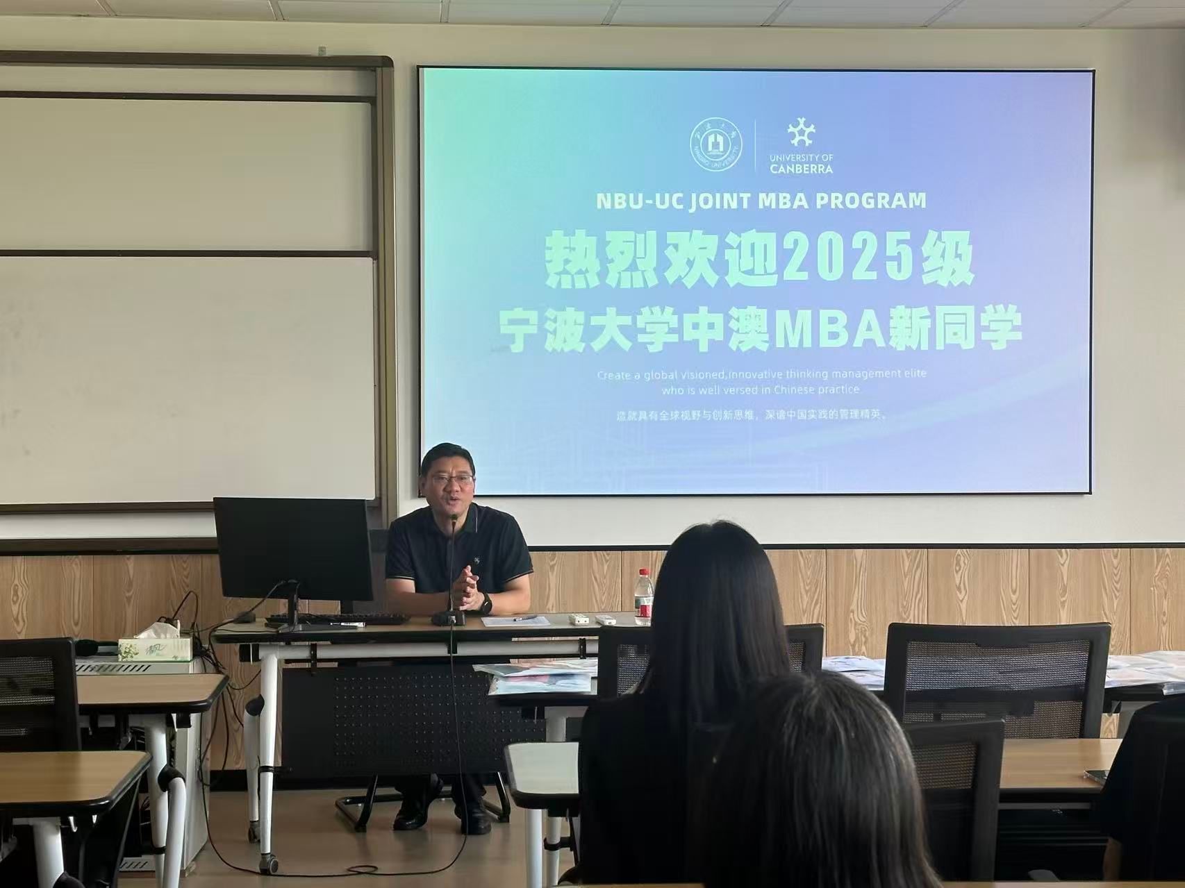 51吃瓜网 副院长彭新敏教授代表项目致辞。他指出,中澳MBA项目融合了中西方的管理学理念,经过24年的完善和发展,已为社会培养输送了1000多名工商管理精英,具有品牌保证。其次,项目通过多年累积,已汇聚了具有较高价值的校友网络,打造了高质量的人才沟通与交流平台,持续为项目和校友企业赋能。他鼓励新生积极参加校友会组织的活动,加入这一终身受益平台。最后,他从保障出勤与时间管理的角度出发,向新生提出新学期的学习要求,他指出在中澳MBA项目学习的这两年中,学员们应该明确取舍,主动“牺牲”掉一些娱乐和休闲的时间,才能更有效地保障学习。他鼓励学员们多带家人走进校园,感受安宁沉静的文化环境,可利用周末上课机会,带家人和孩子到宁大校园里参观和学习,营建浓厚的家庭学习氛围。最后,彭院长还强调了杜绝学生使用AI工具实施学术不端的行为。