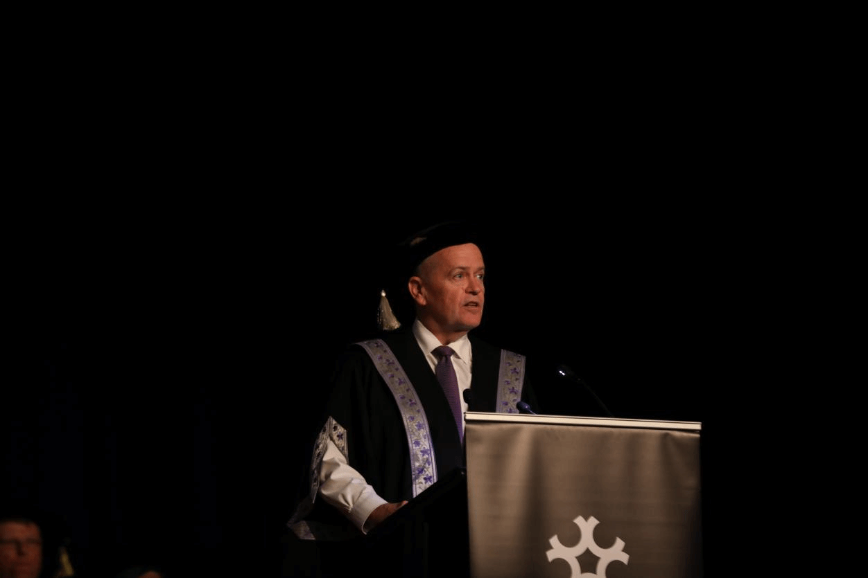 典礼于当地时间上午10时正式开始。在庄严的音乐声中,校领导与教师代表入场。澳洲ACT协调委员会联合主席Selina Walker作开场致辞,堪培拉大学荣誉校长Medy Hassan OAM宣布典礼正式开始。校长比尔·肖顿阁下(The Honourable Bill Shorten)致欢迎辞,强调商业、政府与法律专业对社会发展与创新的重要意义,勉励毕业生坚持终身学习、秉持以人为本理念,为社会贡献智慧与力量。