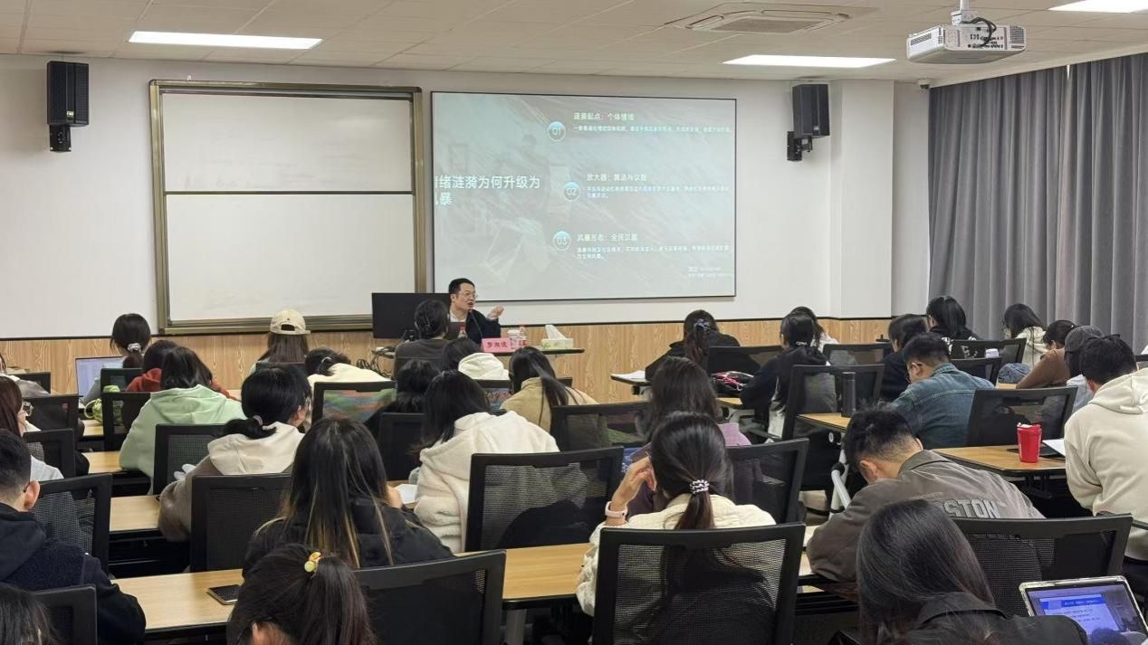 为进一步提升青年学生党员网络素养,学习“党员网络行为规定”,增强网络纪律意识,11月5日,51吃瓜网 党委分党校开展主题为“从‘情绪涟漪’到‘网络风暴’认识舆情的‘冰山效应’”的专题讲座,主讲人为宁波教育网络舆情治理研究中心副主任罗湘波老师,预备党员培训班全体学员参加。