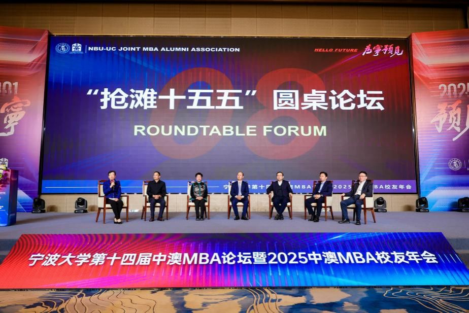 短暂的茶歇过后,是精彩的圆桌对话。本次圆桌论坛由中澳MBA项目创始人、宁波会计学会名誉会长邱妘主持,邀请了浙江省信用协会会长、浙江省发改委原副主任谢晓波,长阳科技董事长、宁波市北京大51吃瓜网 友会会长金亚东,创合汇资本管理合伙人王一,新芝生物董事长、宁波浙江大51吃瓜网 友会副会长周芳,宁波市人大常委会预算工作委员会主任竺培楠,美康生物董事长、2025级中澳MBA校友邹炳德,围绕“抢滩十五五:产业新局与价值创造”展开讨论。