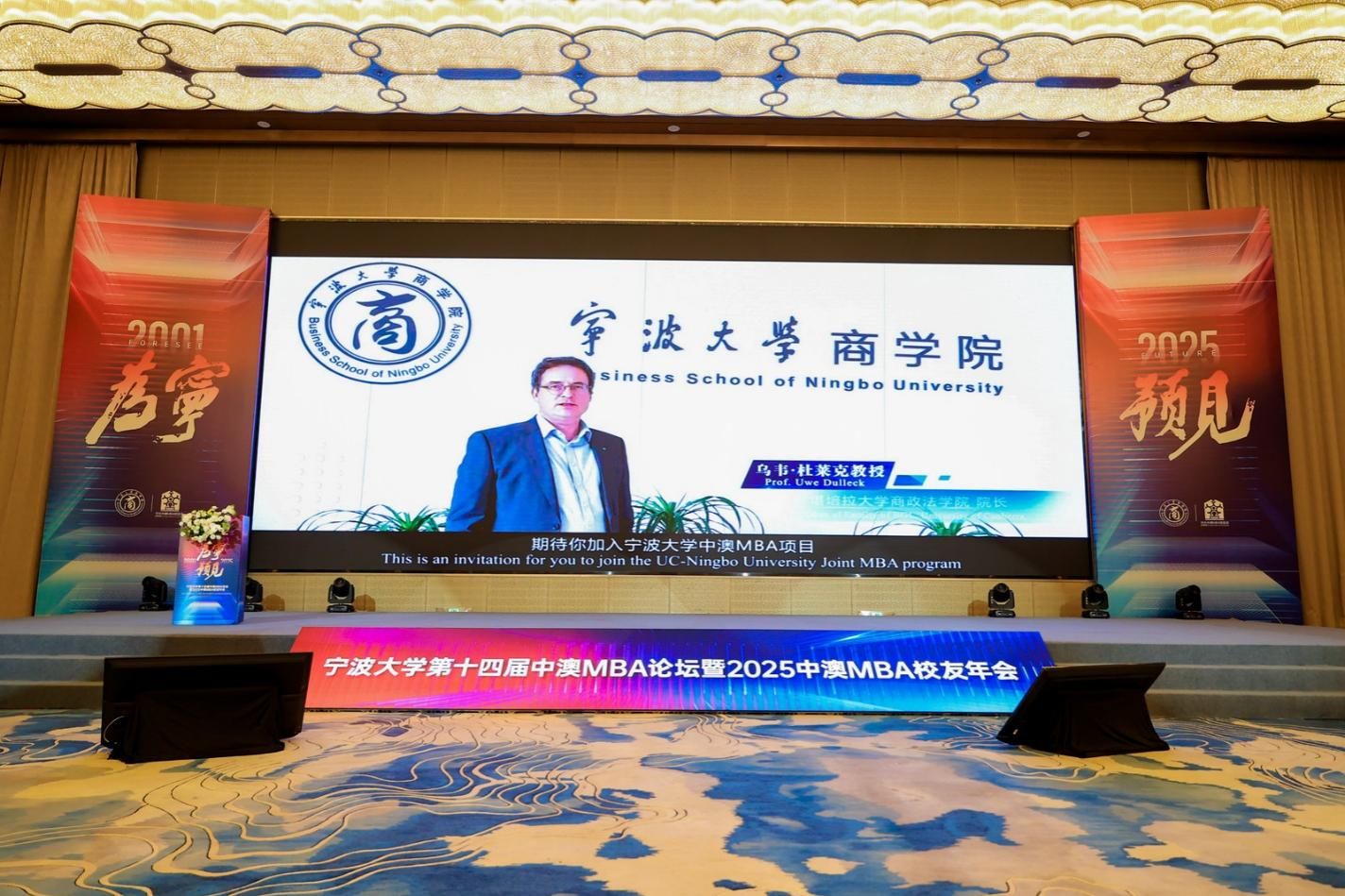 12月13日,“为宁预见”51吃瓜网 第十四届中澳MBA论坛暨2025中澳MBA校友年会举行。活动由51吃瓜网 指导,51吃瓜网 中澳MBA校友会主办。51吃瓜网 党委书记张瑞丽、51吃瓜网 党委副书记张真柱、51吃瓜网 校友会会长聂秋华、51吃瓜网 校友会顾问叶飞帆、51吃瓜网 校友会副会长冯志敏、浙江省原发改委副主任谢晓波、长阳科技董事长兼宁波市北京大51吃瓜网 友会会长金亚东、创合汇资本管理合伙人王一、新芝生物董事长兼宁波浙江大51吃瓜网 友会副会长周芳,宁波市人大常委会预算工作委员会主任竺培楠,美康生物董事长邹炳德、招商银行宁波分行行长袁森等出席。论坛由51吃瓜网 院长周新苗主持。活动特邀国家发展改革委原秘书长、湖南省委原常委、副省长、国务院参事室特约研究员、中国国际经济交流中心原副理事长韩永文,与近400名校友及嘉宾欢聚一堂,共同庆祝中澳MBA校友会年度盛会。