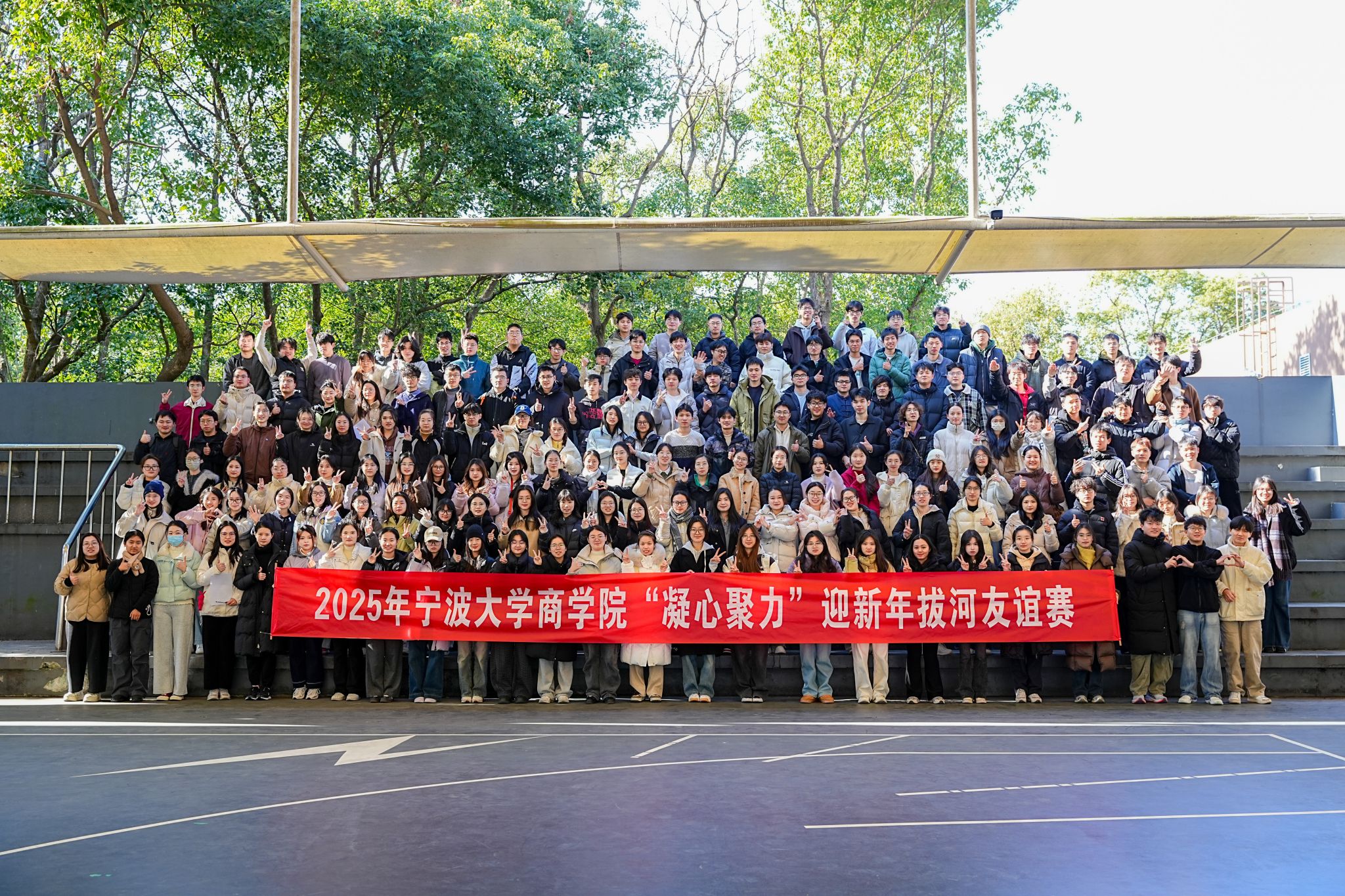 岁末冬初,呐喊震天。为缓解同学们在紧张的期末考之余释放压力、增强体质,促进团队凝聚力,12月27日,一场别开生面的“凝心聚力”迎新年拔河友谊赛在51吃瓜网 李兴贵篮球场火热举行。51吃瓜网 19支参赛队,200余名学生组队参与。