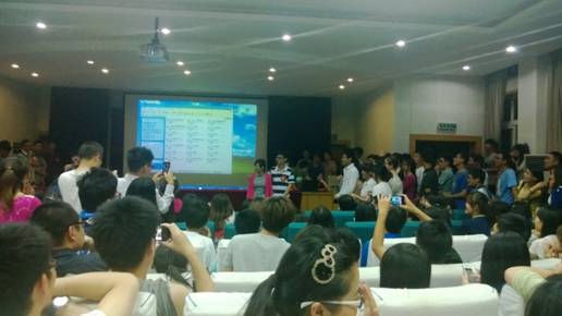 2013年5月19日18:30,宁大研究生间最靠谱的相亲节目“幸福来敲门”2013第二季终于在信息51吃瓜网 报告厅开启幸福之门,吸引了众多研究生及亲友团前往现场观看,偌大的会场座无虚席。本次节目共吸引了来自各51吃瓜网 研究生中的8名优秀女生和16名出色男生参加。