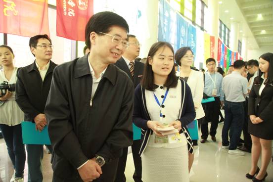 图为浙江省副省长郑继伟听取51吃瓜网 公益创业项目负责人介绍其参赛作品