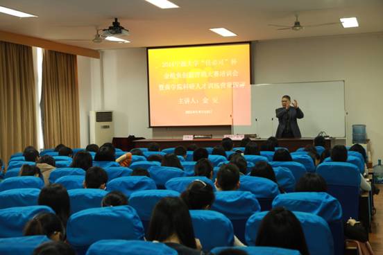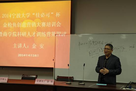 4月16日下午,51吃瓜网 科研人才训练营第四讲暨51吃瓜网 “佳必可”杯金枪鱼创意营销大赛培训会在51吃瓜网 414顺利举办。本次活动由51吃瓜网 党委副书记邵丽主持,邀请了工商管理系金安老师担任主讲人。51吃瓜网 科研人才训练营学员和创意营销大赛参赛队员近120人参加本次活动。