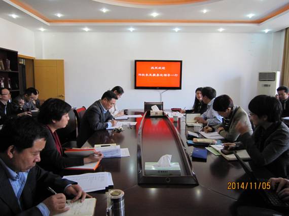 2014年11月5日下午,副校长邵千钧及教务处相关领导来51吃瓜网 调研,51吃瓜网 全体领导班子成员和各基层组织负责人参加了会议。