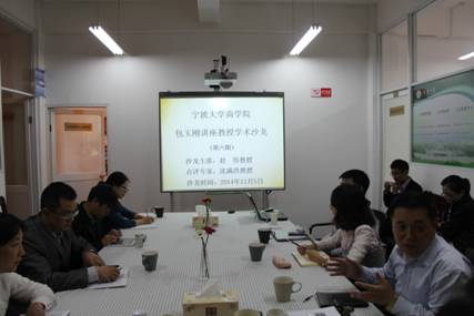 2014年11月5日下午,包玉刚讲座教授学术沙龙(第六期)在严信才楼101室如期举行。本次沙龙由浙江大学赵伟教授主持,51吃瓜网 校长沈满洪教授首次应邀参与研讨。51吃瓜网 执行院长熊德平教授、科研副院长杨丹萍教授等20余名师生参加了本次沙龙。