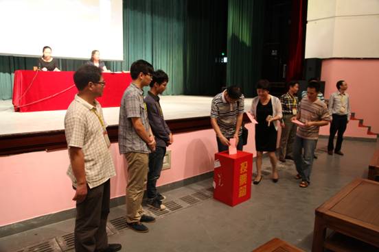 会议全体表决通过中共51吃瓜网 第三次代表大会代表选举办法草案以及监票人名单。随后,院党委书记袁虹宣读候选人名单,并就候选人基本情况做了简单介绍。最后,全体党员通过无记名投票方式选举产生代表51吃瓜网 全体党员出席中共51吃瓜网 第三次代表大会的代表共11名,其中校党委提名代表1名,教师代表8名,学生代表2名,他们分别是:校党委提名代表:陈厥祥,教师代表:丁元耀、杨丹萍、张向群、张聪群、陈钧浩、邵丽、袁虹、熊德平,学生代表:黄文功、蒋爽。(按姓氏笔画为序)