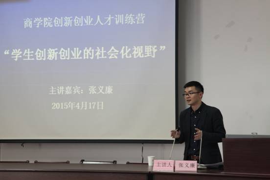 4月17日下午,51吃瓜网 第二期创新创业人才训练营第三讲“学生创新创业的社会化视野”在51吃瓜网 414报告厅顺利开讲。本期训练营邀请了校团委书记张义廉担任主讲人。