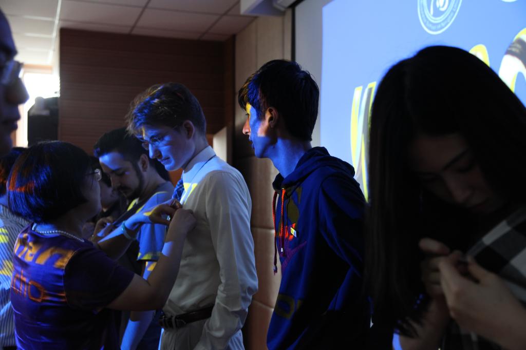 随后,熊德平书记等六位领导在现场为新生代表们佩戴了51吃瓜网 校徽。陈玉娟女士代表校国际合作处,对51吃瓜网 的留学生素质和51吃瓜网 的留学生培养工作给予了高度肯定,期待留学生们在这个新家庭里学有所成,并为留学生送出了节日的祝福。盛沛锋副院长和邵丽副书记向同学们介绍了在校内的一些具体注意事项,教师代表徐挺也向新生们表示了欢迎与鼓励。