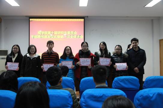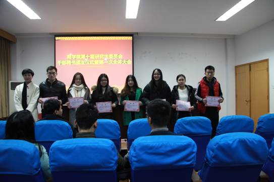 12月23日下午,51吃瓜网 第十届研究生委员会干部聘书颁发仪式暨第一次全体大会在51吃瓜网 414室举行。院党委副书记邵丽、院第十届研究生委员会秘书长陈彬、院第十届研究生委员会主席团成员、各部门正副部长及部长助理出席本次活动。