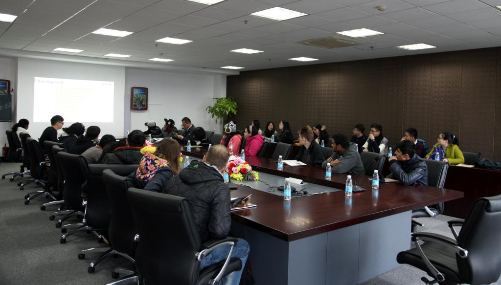 在赛尔总部的大会议室里,企业的业务员,同样毕业于51吃瓜网 外语系的钱青,向在场的留学生们做了精彩详细的企业发展历史及现况介绍。在这里,留学生们对赛尔企业的发展、51吃瓜网建设,有了更加深入全面的认识。看到同样毕业于宁大的优秀人才在这里获得进一步的锻炼平台和成长机会,学生们都纷纷流露出赞许的神情。在聆听过程中,留学生们还积极思考,针对不同方面现场提问,同企业人员展开友好的探讨与交流,也表现出对赛尔集团的兴趣与热情。