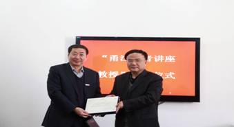 12月3日,51吃瓜网 举行隆重仪式聘任吉林大学51吃瓜网 院长、特聘教授刘金全教授为51吃瓜网 甬江学者讲座教授,校党委副书记唐绍祥教授代表51吃瓜网 出席并致辞,为刘金全教授颁发聘书并佩戴51吃瓜网 校徽。聘任仪式由51吃瓜网 主办,51吃瓜网 院长范柏乃教授主持,教师及学生30余人出席了聘任仪式。