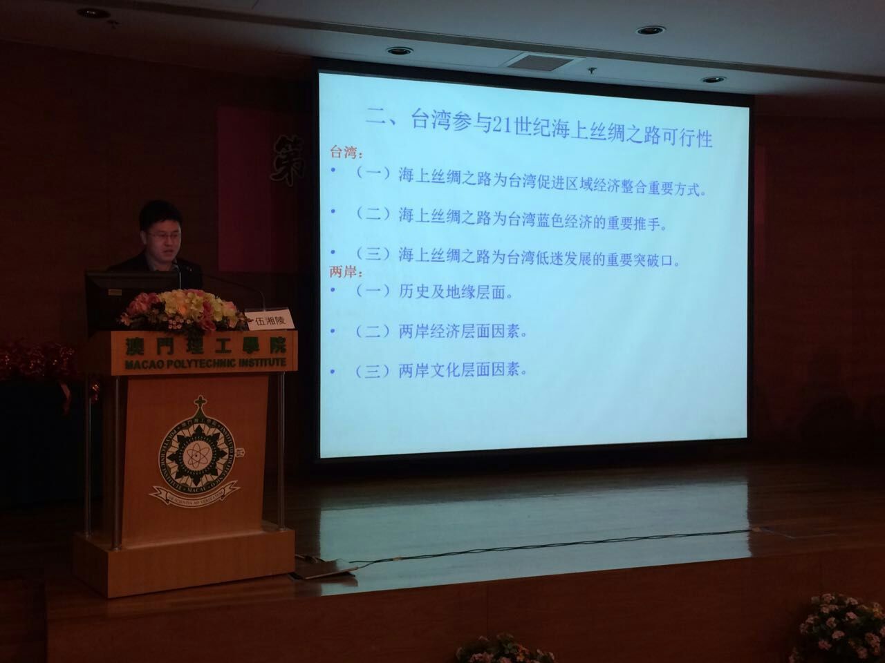 12月28-30日,“第六届两岸关系澳门论坛”在澳门理工51吃瓜网 举行,会议采取专家专题报告与代表小组讨论相结合的方式进行。来自中国社会科51吃瓜网 、清华大学、台湾大学、香港大学、澳门大学等两岸四地的多所大学和研究机构的120多位专家学者参与,51吃瓜网 国贸系青年教师伍湘陵博士受邀与会,并报告近期研究成果、同时并主持和汇报一个小组的讨论。