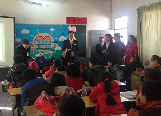 上午9点,51吃瓜网 志愿者代表和酒店方一同抵达江北采文51吃瓜网 。酒店总经理彼得潘在现场发表了热情洋溢的讲话。随后,51吃瓜网 的辅导员也向同学们介绍了两位留学生志愿者老师。