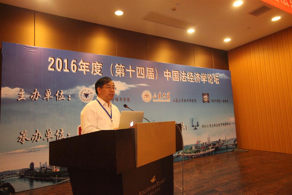 颁奖仪式结束后,史晋川教授对本届论坛做了总结发言。首先,史晋川教授介绍了中国法经济学论坛举办的目的和意义,对本届论坛交流论文的质量给予高度评价,并再次对获奖论文的作者表示祝贺。接着,史晋川教授对中国法经济学领域的学者提出中肯建议,鼓励经济学者更多关注法律、更多重视机理分析,从而更好促进经济学和法学的学科交叉融合。最后,史晋川教授对本次论坛的会务工作给予高度评价,再次感谢论坛承办方的努力工作,并欢迎大家明年继续热情参与中国法经济学论坛。至此,第十四届中国法经济学论坛(2016)圆满落幕。