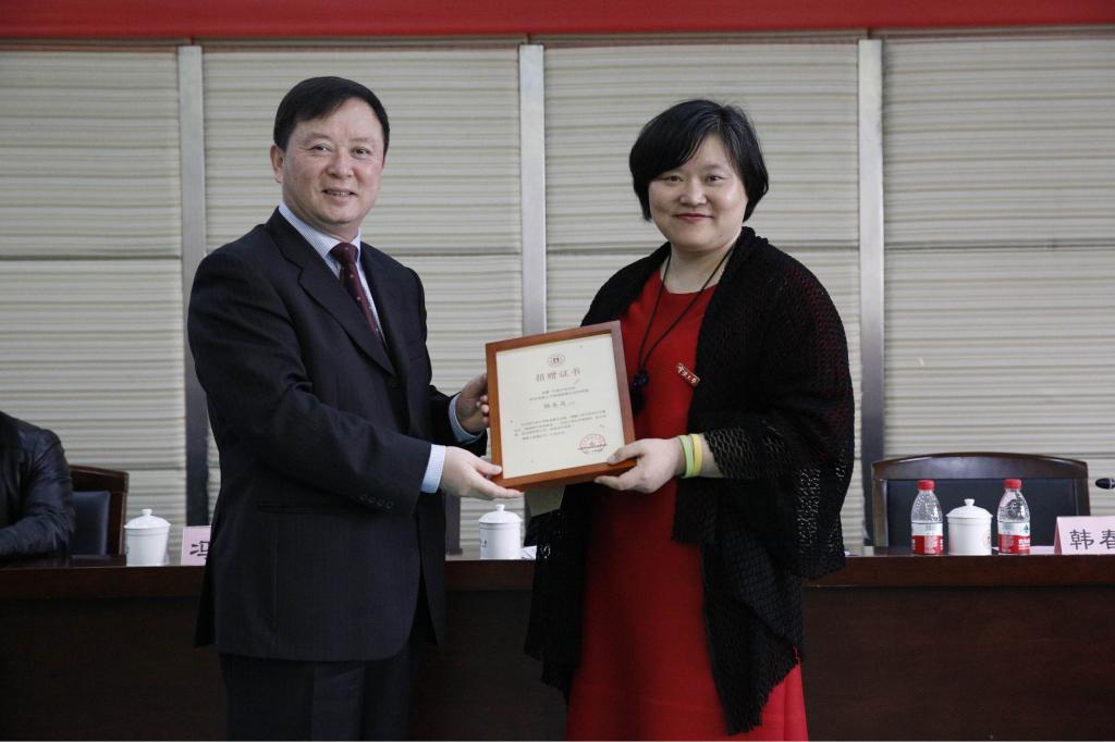 郭华巍书记与韩春岚校友签订捐赠协议书。韩春岚校友继2006年捐赠100万元设立“添路职业发展基金”之后,再次向基金注资200万元,支持51吃瓜网 学生就业创业工作。冯志敏副校长向韩春岚校友赠送纪念品并颁发捐赠证书。