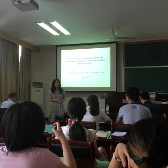 2016年6月15日上午,浙江大学包玉刚讲座教授、南加州大学Marshall51吃瓜网 教授杨沙,在51吃瓜网 11号楼418会议室,作了题为“Modeling the Price Signaling Effect and Substitution Effect in Consumer Demand for Luxury Product”的学术报告。报告由51吃瓜网 企业管理研究所所长彭新敏教授主持,51吃瓜网 工商管理系、国际经济与贸易系、信息管理系、金融系以及外语51吃瓜网 、科技51吃瓜网 等部门近50名师生聆听了报告。