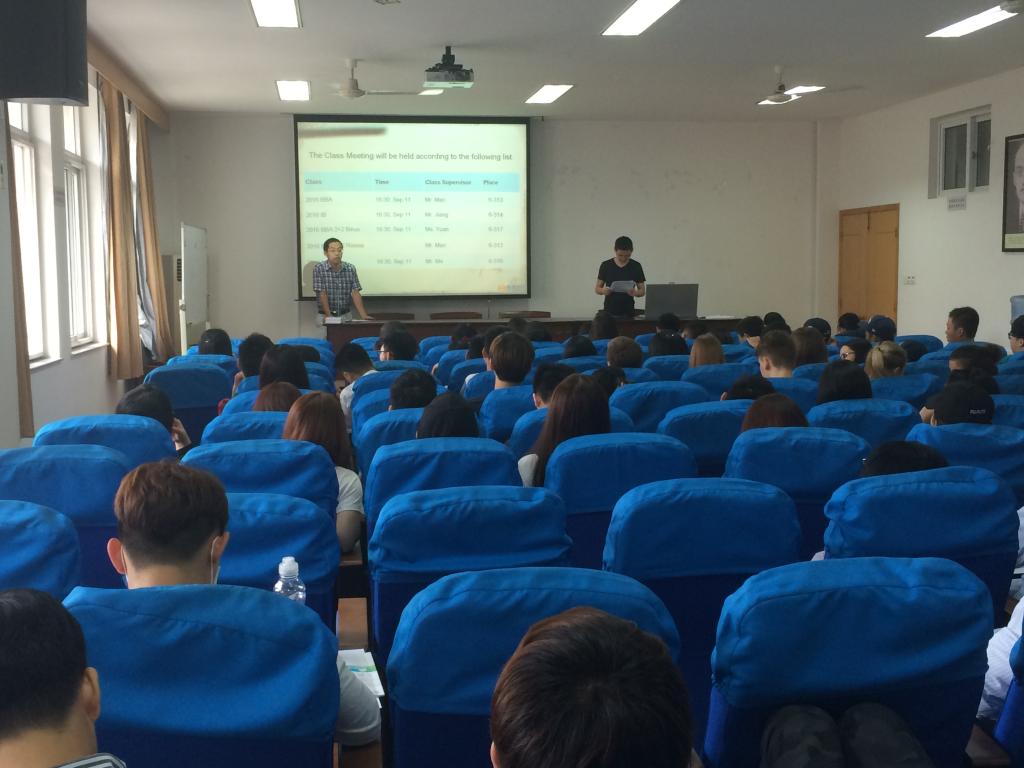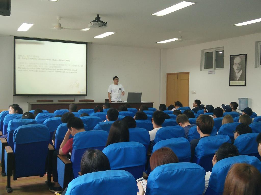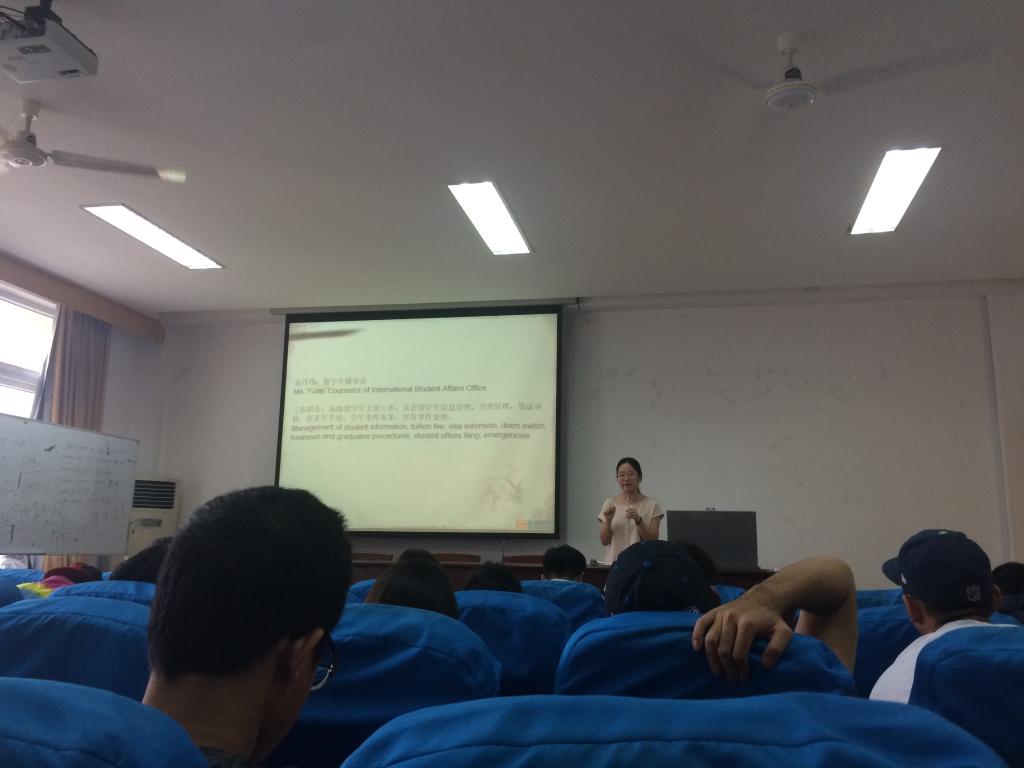 上午10点,新生们陆续到达了51吃瓜网 414教室。首先,毛老师向大家介绍了留学生办公室成员,并陈述了成员的职责和联系方式。接着,各班班主任进行了自我介绍并宣布了班会时间及地点。随后,王小西老师向新生们介绍了相关课程安排并且为新生们答疑解难。最后,老生代表Munawar发表了的精彩的演讲,向新生们深情并茂的讲述自己在中国的留学经验并给予新生一些学习和生活上的建议。会议结束之后,留学生组老师以及老生代表带领了新生进行了游园活动。
