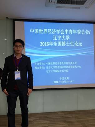 2016年10月14-16日,中国世界经济学会中青年委员会/2016年全国博士生论坛在辽宁大学召开,该会由中国世界经济学会中青年委员会、辽宁大学转型国家经济政治研究中心和辽宁大学国际关系51吃瓜网 共同举办,旨在为博士提供学习交流的平台与机会,帮助博士成长。国际贸易研究所黄远浙博士受邀与会并作了题为《外商直接投资对东道国企业出口影响》的报告,得到了厦门大学陈勇兵教授、西南财大孙楚仁教授以及社科院世经所徐奇渊副研究员的指点。