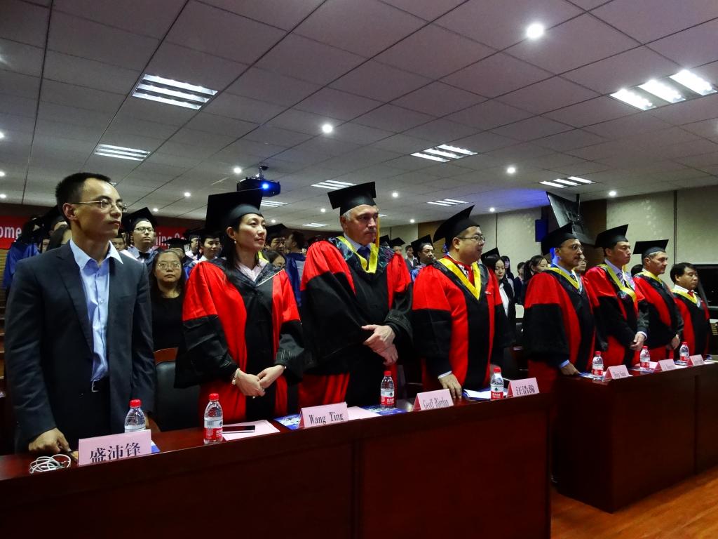 当晚八点,典礼开始。院长范柏乃教授以一句饱含热情的“Welcome!”向远道而来的澳方嘉宾和在场学员们致以诚挚的欢迎。在介绍完两校的出席嘉宾后,全体师生起立,现场奏响了中澳两国国歌。汪浩瀚教授代表51吃瓜网 发表了讲话。他肯定了宁大中澳MBA项目创办十六年来所取得的成果——从单纯的国外学位研修项目到受国家教育部认可的学位教育项目的提升和转变。他指出51吃瓜网 国际化教育发展进一步加强和发挥了51吃瓜网 在浙江省国际合作办学领域中的地位和作用。他鼓励2016届的毕业生们“不轻言放弃”,保持梦想和激情,通过实践,实现自己的梦想和人生价值。同时,他也鼓励2016级新生珍惜学习机会,注重理论联系实际,注重本土与国际化相结合,在各自事业发展中积累成功经验,互学互助,学有所成,学以致用。紧接着,澳大利亚堪培拉大51吃瓜网 长Deep Saini教授发表了真挚而诚恳的讲话,他以自己在堪培拉大学的职业生涯为切入点,侃侃而谈项目创立至今为止的变化和对未来中澳双方在众多方面开展进一步合作的殷切期待。他鼓励中澳MBA的学生们通过项目的学习,积极实践自己的商业理想,并祝福这一届的毕业生能够获得事业上的成功。